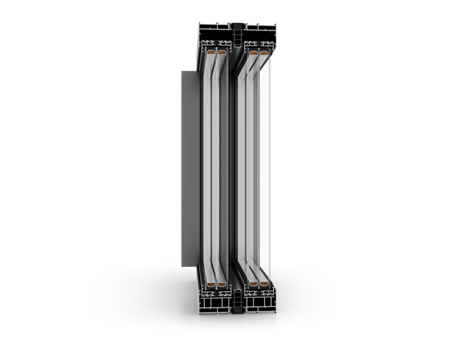 Uw = 0,95 W/(m²K)* mit 6esg/18sws/6esg/18sws/6esg-Verglasung – Ug = 0,5 W/(m²K).