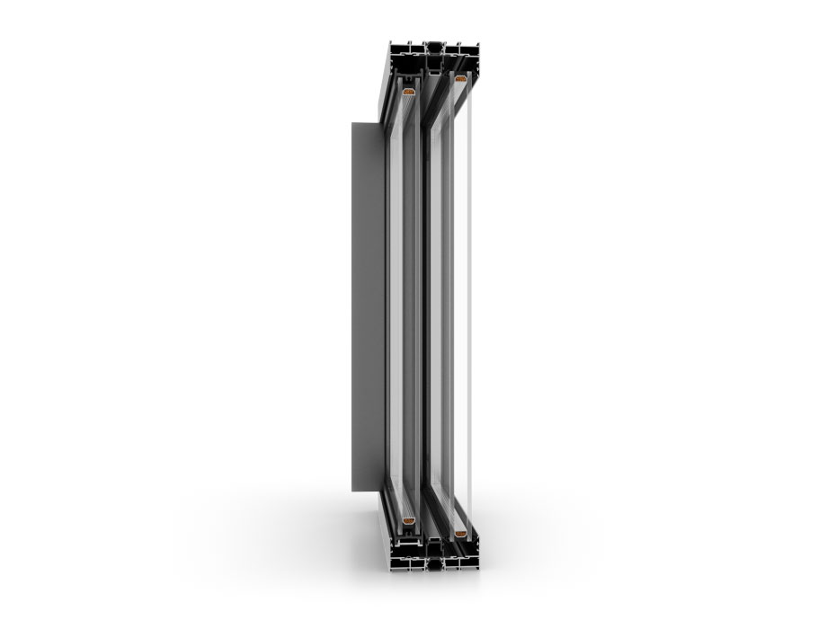 Aluminium-Schiebesystem, das sich durch moderne Ästhetik und außergewöhnliche thermische Leistungen auszeichnet. Das elegante Design des Systems besteht vor allem in der Verwendung von sehr schmalen Profilen, die nur 9–14% der Gesamtkonstruktion umfassen.
