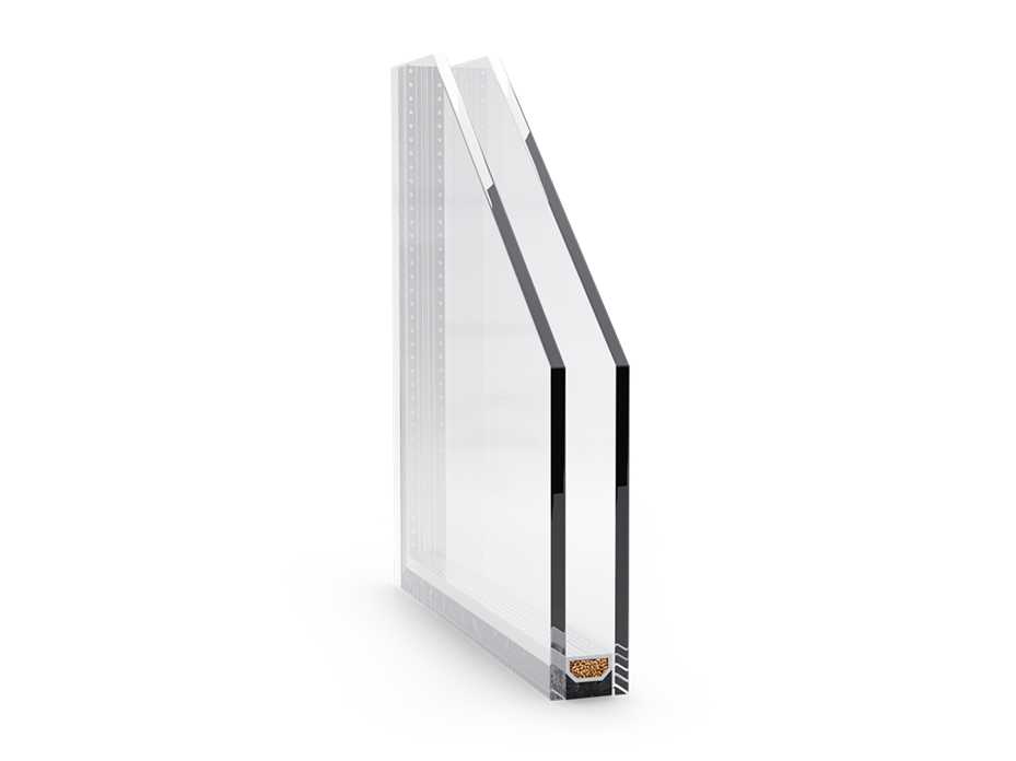Eine Doppelverglasung, die aus zwei Glasscheiben besteht. Dieser Standard gilt für einfache Fenster- und Türsysteme. Das Basispaket zeichnet sich durch die Stärke von 24 mm aus, in dem die Komponenten eine Stärke von: 4 mm (Glas) – 16 mm (Abstandshalter) – 4 mm (Glas) haben, wodurch das so genannte 4/16/4-Paket entsteht. In dem durch den Abstandshalter gebildeten Scheibenzwischenraum befindet sich hauptsächlich Argon (90 %), was den Wärmedurchgangskoeffizienten Ug weiter verringert.Die Ausgabe stellt kein kommerzielles Angebot dar. Die dargestellten Bildmaterialien dienen nur zu Illustrationszwecken und die tatsächlichen Farben und Strukturen der Produkte können von den in den Werbematerialien dargestellten abweichen. Die dargestellten Illustrationen, einschließlich der Farbdarstellung, können keinen Grund für eine Reklamation darstellen. Die Renderings zeigen Beispiele für Profil- und Verglasungskombinationen.