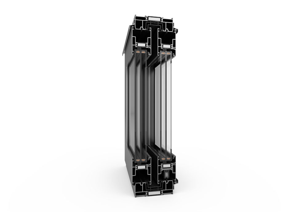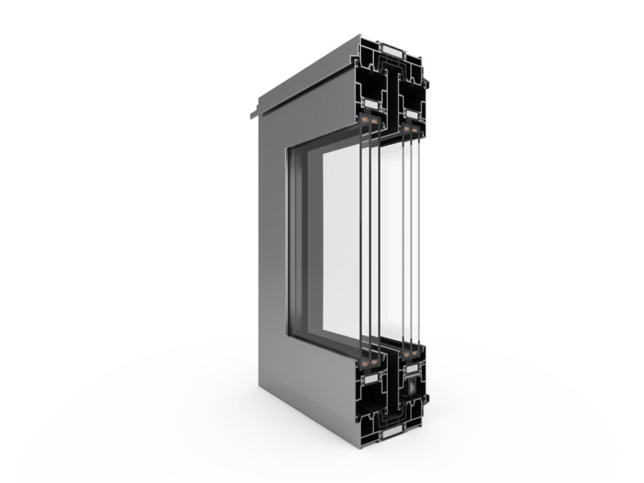 Uw = 1,5 W/(m²K)* bei Verwendung von 4one/14 Ar/4/14 Ar/4one – Paket – Ug = 0,6 W/(m²K), mit Argon gefüllt, mit Aluminiumrahmen.