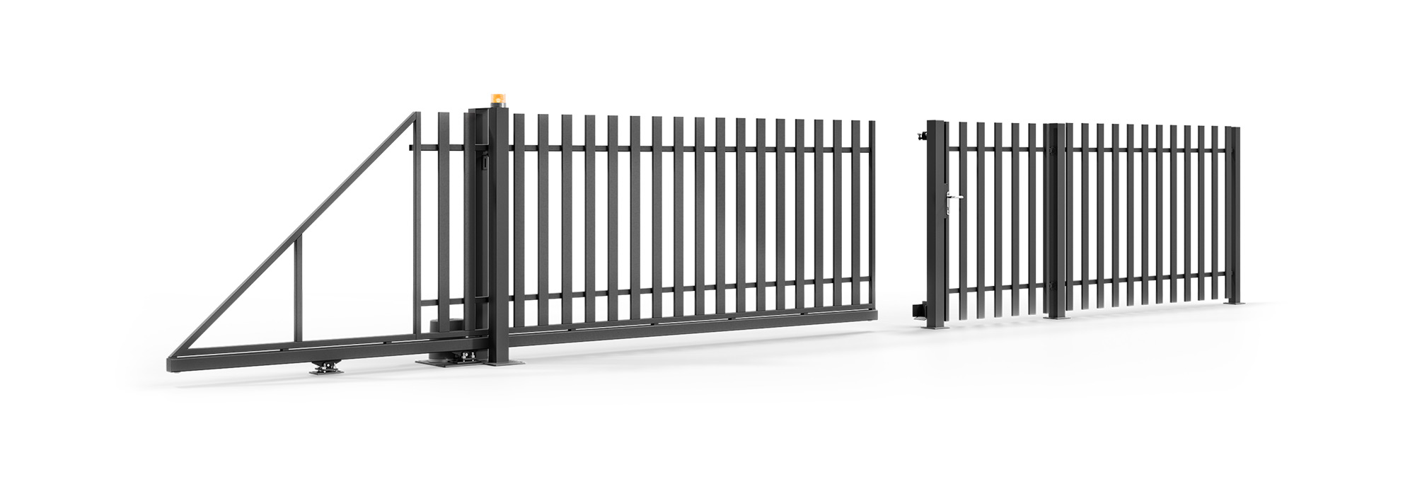 • Zaunsystem: Pforte, Schiebetor oder zweiflügeliges Tor, Spannweite