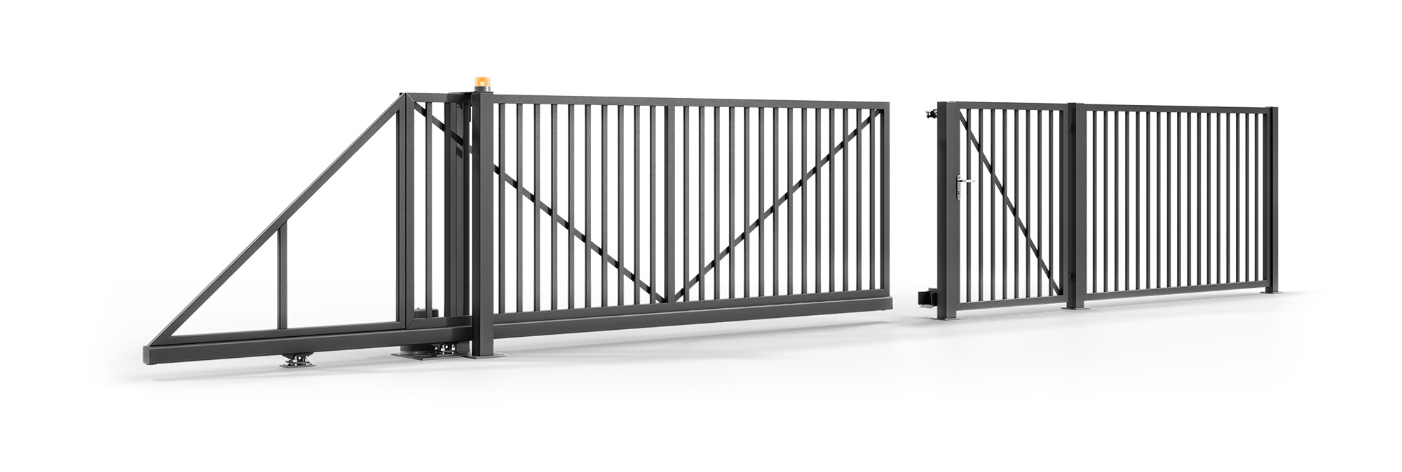 • Zaunsystem: Pforte, Schiebetor oder zweiflügeliges Tor, Spannweite