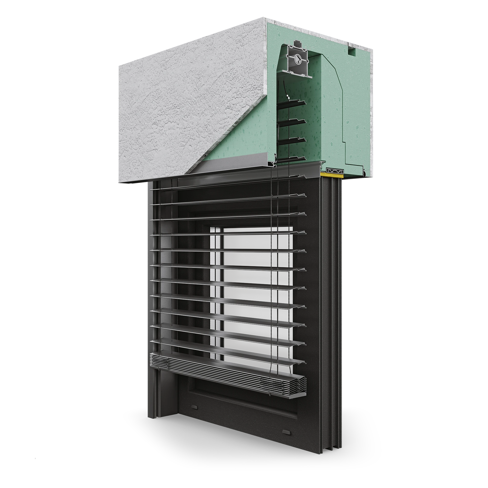 Die Kombination aus Neopor®/Styropor®-Material und luftdichter Konstruktion ergibt einen hervorragenden Schutz vor Sonne, Wind und Feuchtigkeit. Zusätzliche Verstärkungen (im Schaumstoff eingebettete Stabilisierungskonsolen, Fensteraussteifungen und innovative Befestigungen) schaffen eine Konstruktion, die dauerhaft mit dem Fenster und der Wand verbunden ist. Sie lässt sich perfekt mit jeder Art von Verputzung (Putz, WDVS, Klinker) verbinden und bildet eine Einheit mit der Wand.