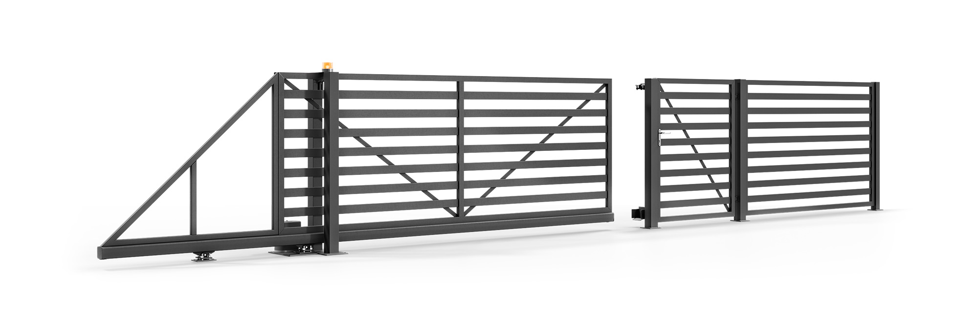 • Zaunsystem: Pforte, Schiebetor oder zweiflügeliges Tor, Spannweite